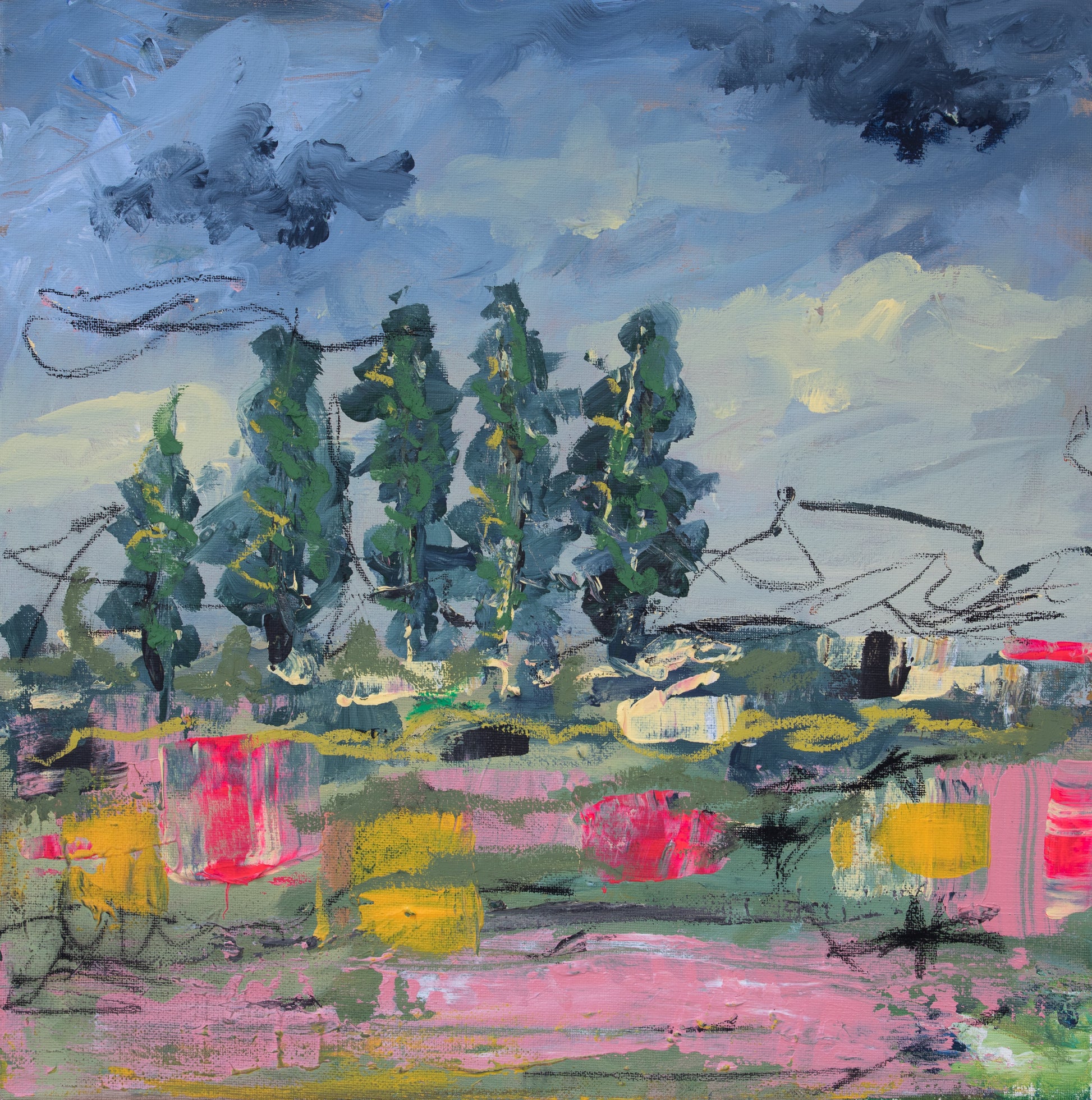 Acrylic painting of country landscape on canvas 40x40 cm (15.7"x15.7")