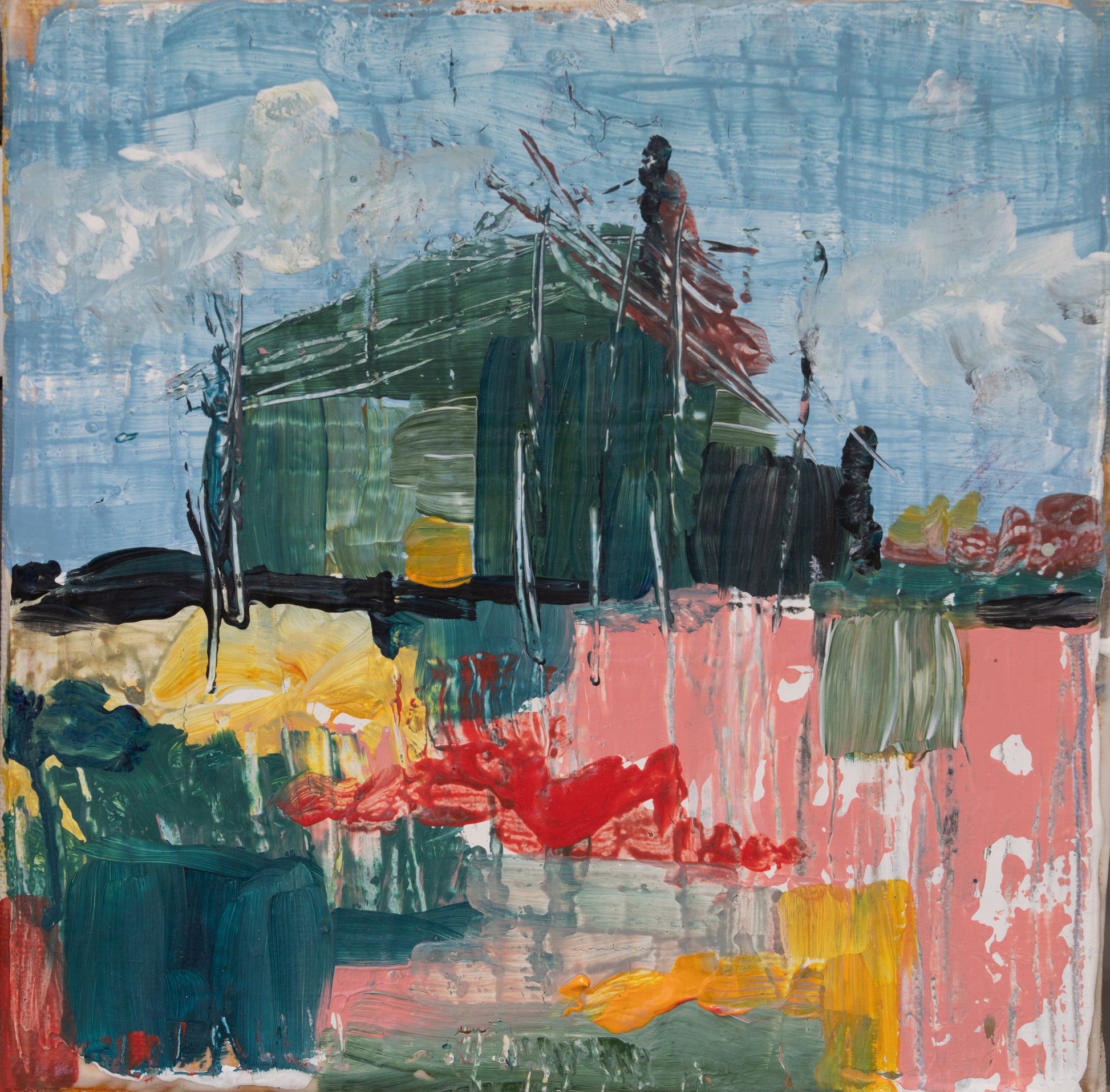 Acrylic painting of a house in the field on canvas 20x20 cm (7.9"x7.9")