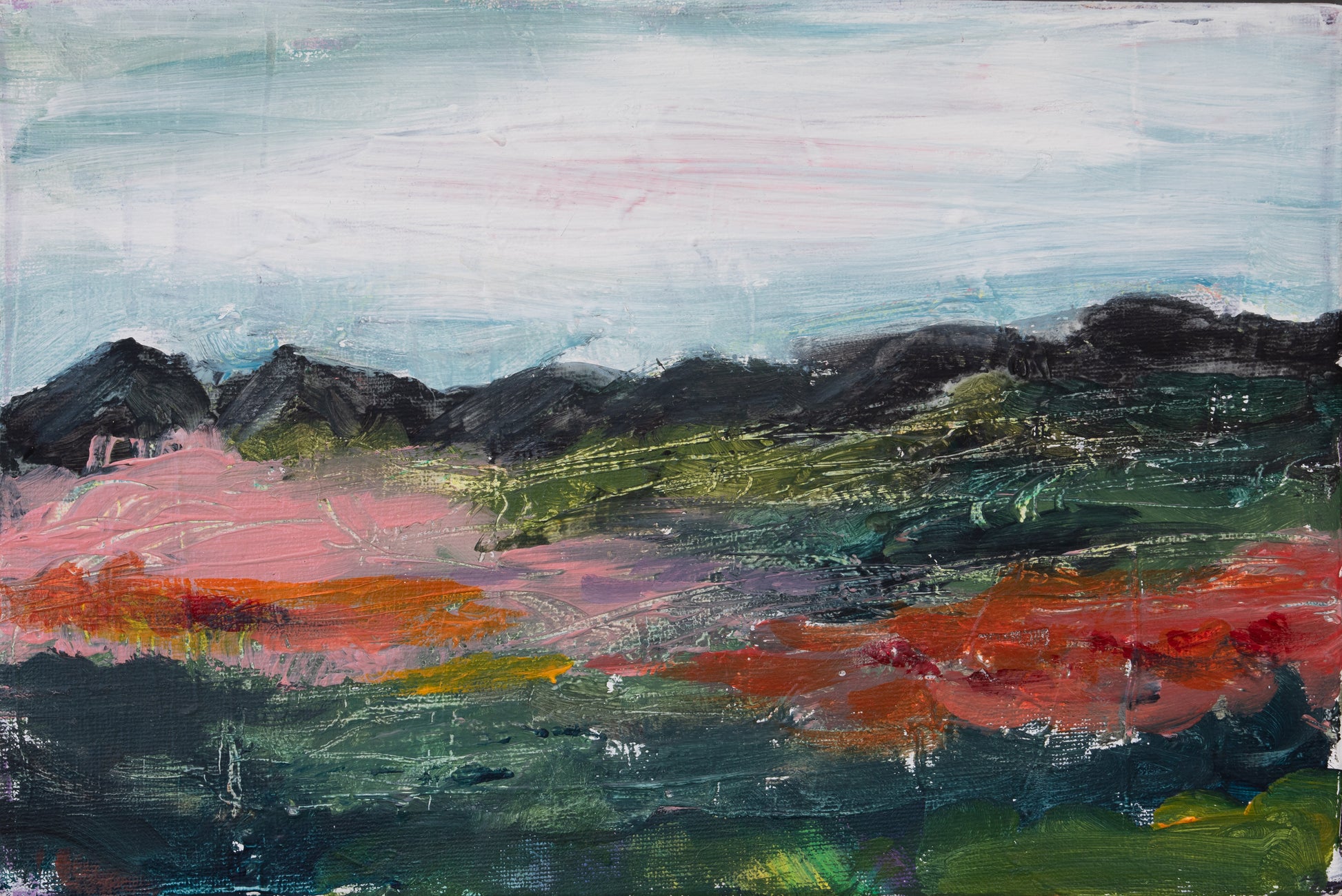 Acrylic abstract painting of hills on canvas 30x20 cm (11.8"x7.9")